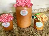 A nossa visita foi para entregar 157 unidades de vidros (aqueles de conserva e doces de 400g. ou 500g.). Uma chef de cozinha vai toda semana lá auxiliar e orientar a produção de geleias doces e também agridoces apimentadas. Assim que os vidros chegam, passam por um processo de esterilização e depois são reaproveitados para armazenarem os doces que são produzidos para venda.