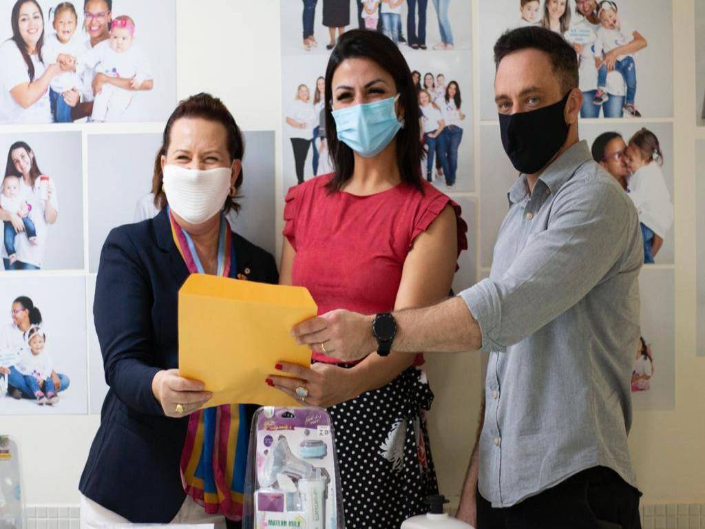 Os equipamentos entregues pelo clube foram: 1 (um) Pipetador Automático, 1 (um) Agitador Vortex Multifuncional, 2 (duas) bombas tira-leite e 50 (cinquenta) Pipetas Graduadas Sorológicas. Na entrega deste equipamentos, estava presente também, a mãe doadora de leite, Tatiane Padilha de Oliveira. Ela é mãe da Sofia, de dois anos de idade. “Os estoques estão muito baixos devido a pandemia e é uma satisfação enorme pra mim poder doar e contribuir com a nutrição de tantas crianças”, afirmou.