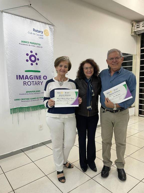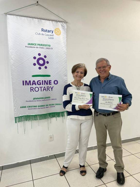 Para demonstrar todo carinho e reconhecimento pelo trabalho realizado junto ao Rotary Club de Cascavel Leste. A Presidente Janice Parizotto, em nome de todos os associados do clube fez a entrega de Menção Honrosa para os companheiros JAIR BOSCHETTO e RAQUEL BEATRIZ LANGER. Obrigada companheiros Jair e Raquel.