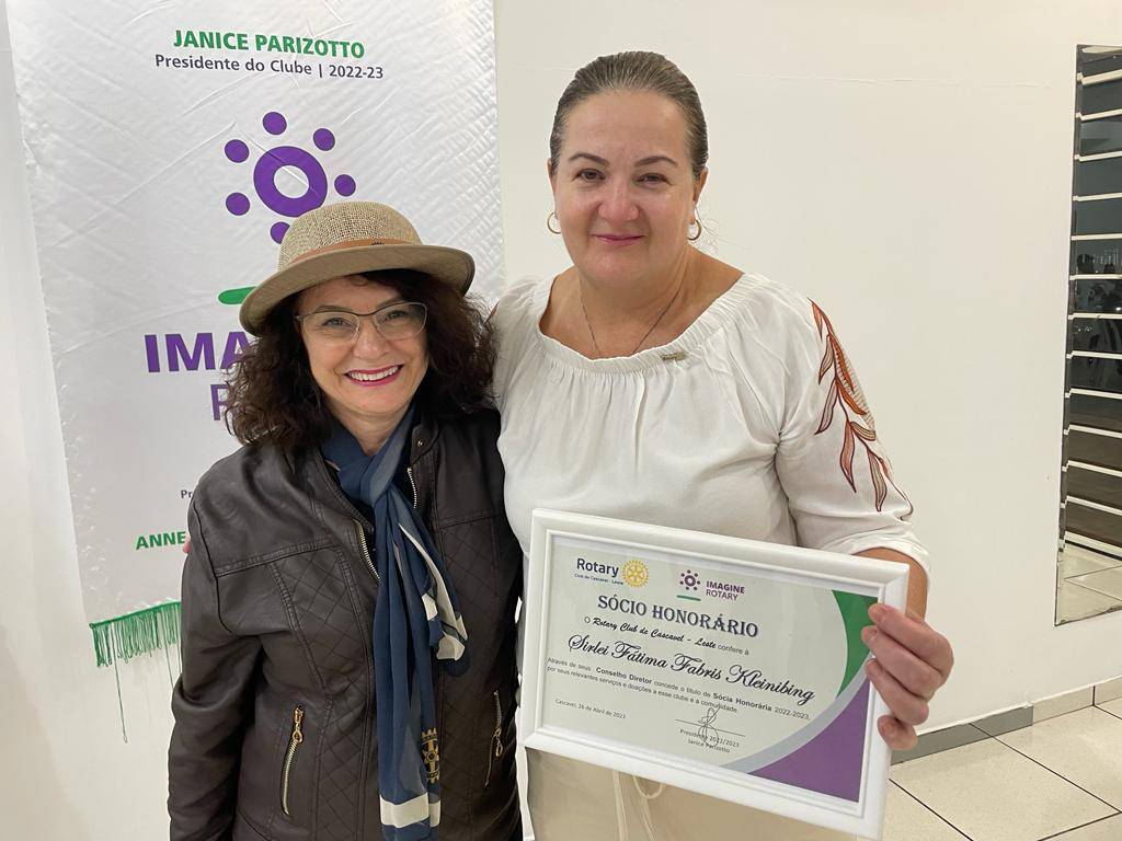 Hoje o Rotary Club de Cascavel Leste concede este título de ASSOCIADA HONORÁRIA a Senhora SIRLEI KLEINIBING.