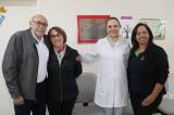 Em seguida, iniciamos as visitas levando o Governador e sua esposa para conhecer o Banco de Leite Humano do Hospital Universitário do Oeste do Paraná -HUOP. Este Projeto foi realizado pelo nosso clube na gestão de 1998/1999 e inaugurado no dia 26/06/1999. O Governador foi recepcionado pela enfermeira Anelise Vieczorek, que atualmente é a responsável pelo setor. Aproveitando a oportunidade os levamos para conhecer também a UTI Neonatal do HUOP.
