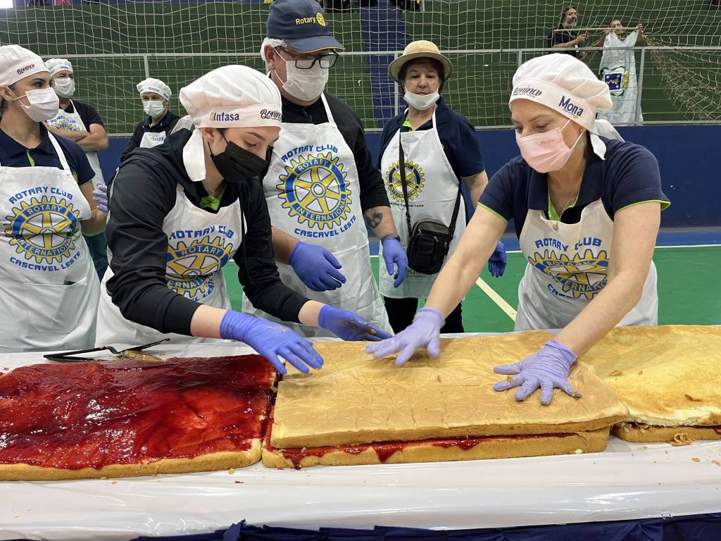 O bolo gigante de aniversário de Cascavel, preparado pelo Rotary Club de Cascavel - Leste, foi servido na tarde desta terça-feira (14), dia que município completou 72 anos.