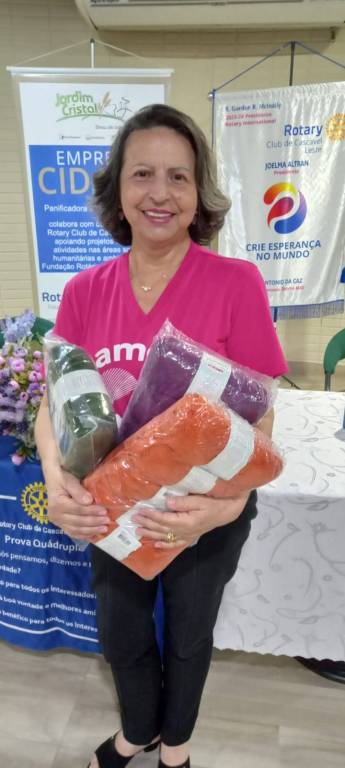 O Rotary Club de Cascavel - Leste fez a doação de fios de lã para este projeto que além dos produtos leva também muito amor ao próximo.