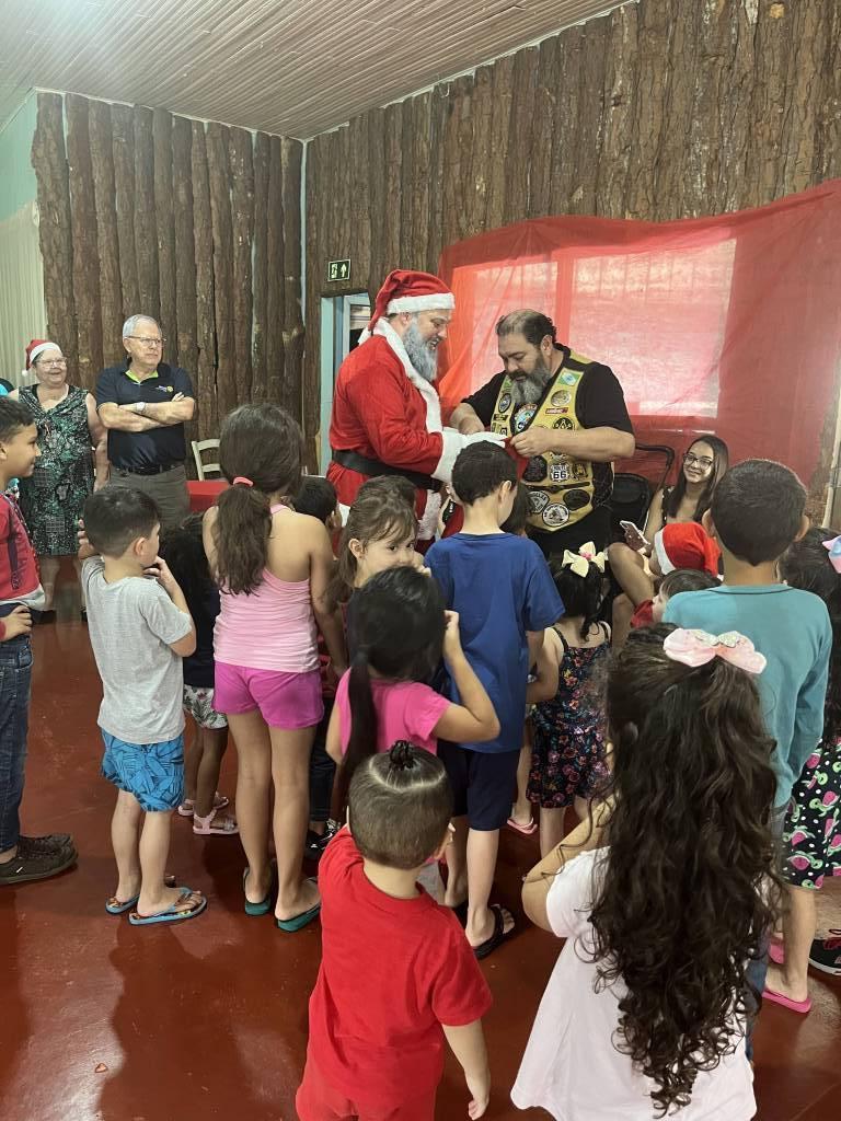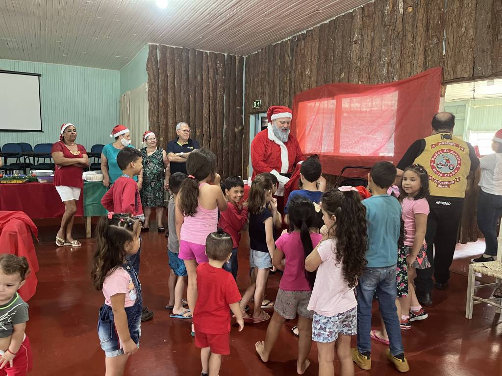 O Rancho da Capela São José ganhou tons natalinos, com a presença do ”Papai Noel” neste sábado (9), quando foi entregue os presentes arrecadados na campanha “Faça uma criança feliz neste Natal” realizada pela Pastoral da Criança.