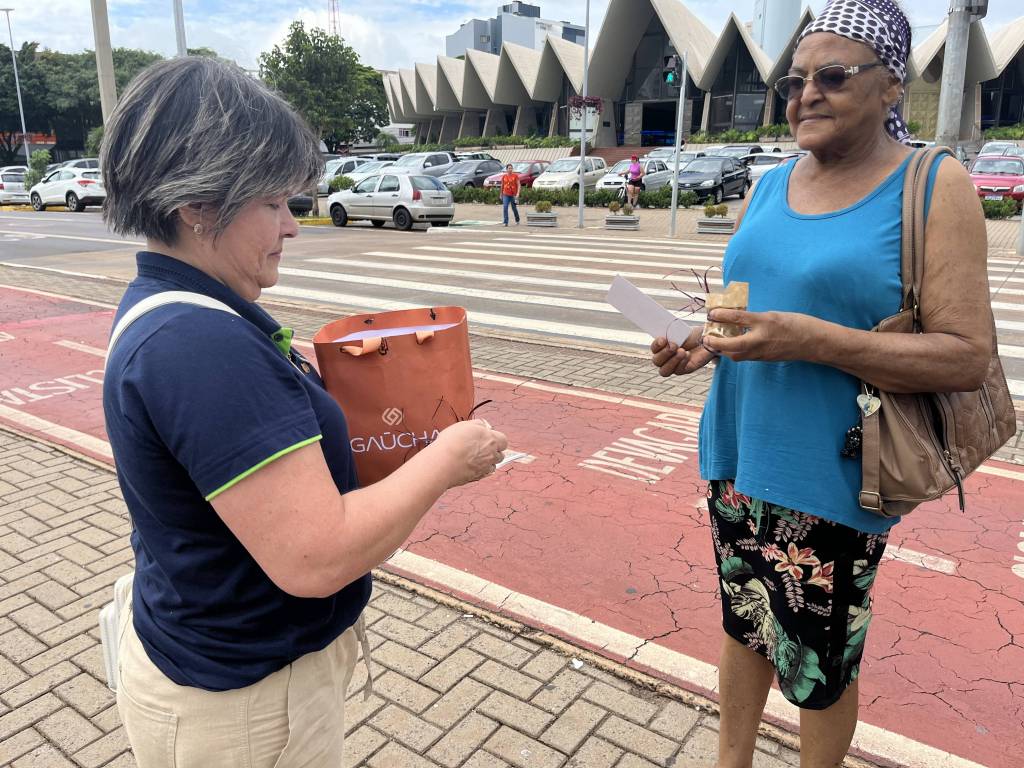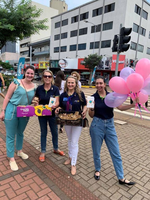 Na sequência os rotarianos seguiram para o calçadão, no centro da cidade, onde entregaram flores (suculentas), e uma mensagem para as mulheres da nossa cidade.