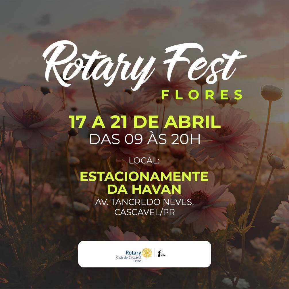 O Rotary Club de Cascavel Leste e a Sociedade Espírita Francisco de Assis (SEFA) têm o prazer de anunciar a tão aguardada chegada da Rotary Fest Flores em Cascavel neste abril. Realizada entre os dias 17 e 21, a feira acontecerá no estacionamento da Havan da Tancredo Neves, das 09h às 21h, com entrada franca para todos os visitantes.