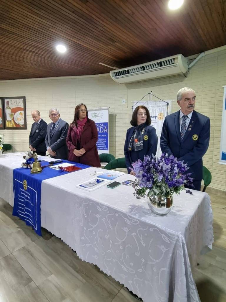 "Prometo desempenhar minha função com a mais alta competência, tratando os assuntos do clube de serviço com a mesma seriedade e zelo usados em nossos negócios, de acordo com os estatutos e regimentos internos do Rotary", declarou o novo presidente durante seu juramento.