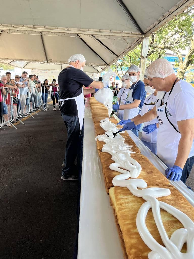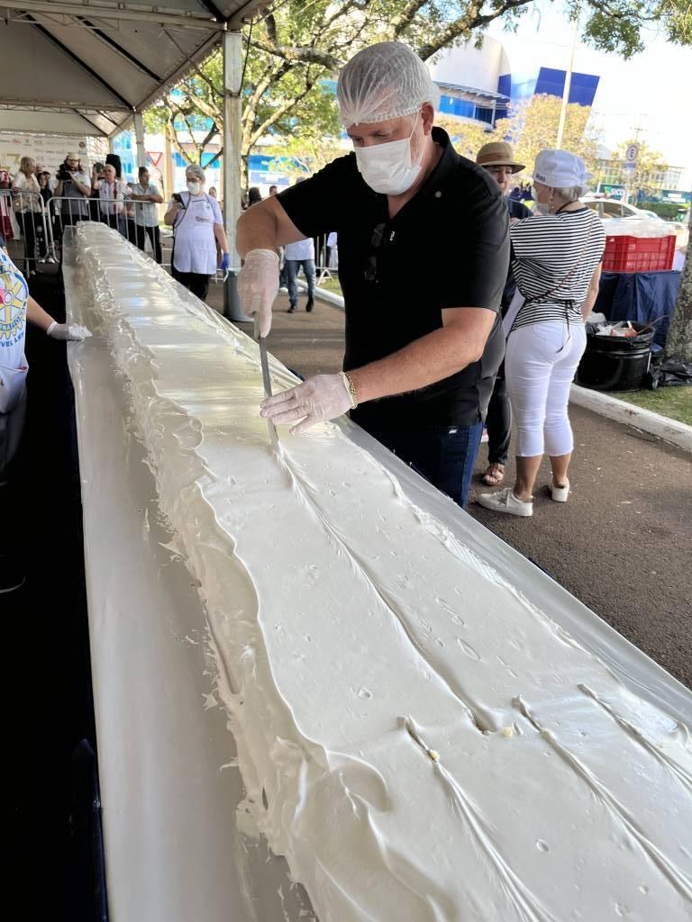 Há mais de duas décadas, o Rotary Club de Cascavel-Leste, em parceria com a prefeitura e colaboradores, prepara o doce, que já é tradição nas comemorações alusivas ao aniversário do município. O evento, ocorreu na rua Rui Barbosa, ao lado da prefeitura, contou com a presença da comunidade para cantar os parabéns e saborear uma fatia dessa delícia. A festa foi um sucesso, trazendo sorrisos e felicidade para todos os presentes.