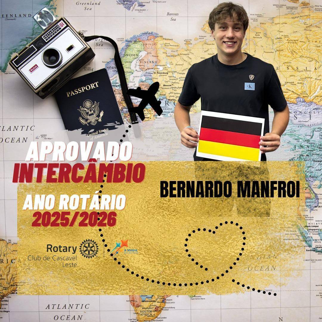 É com imensa alegria que apresentamos o intercambista Bernardo Manfroi que foi aprovado para participar do programa de intercâmbio de jovens do Rotary, ele será o representante do Rotary Club de Cascavel-Leste e vai para Alemanha🇩🇪🥳