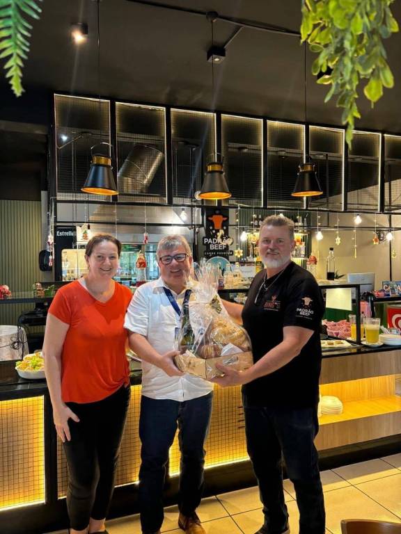 O encontro aconteceu na Panificadora Jardim Cristal, gentilmente acolhidos pelos companheiros Luiz e Sirlei, em um momento de diálogo, alinhamento e fortalecimento dos ideais rotários.