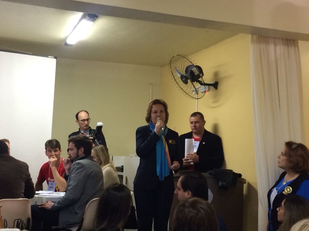 Outro tema muito importante foi apresentado pelo representante do Rotaract Renann Ferreira falou um pouco sobre um dado alarmante: apenas 3% dos membros do Rotaract se tornam rotarianos – foram dadas algumas sugestões de como mudar esse quadro, chamando o pessoal do Rotaract para se aproximar dos clubes de Rotary, participando das reuniões, fazendo ações em conjunto – e como um dos objetivos do Rotary é renovar o quadro associativo, nos grupos de Rotaract e Interact é onde estão os possíveis futuros rotarianos.