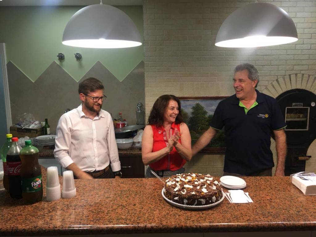E com toda essa comemoração, queremos parabenizar os companheiros Camilo Carbonera Motter, Ildo Forcelini, Janice Parizotto e Fatima Paula Oechsler Schneider, desejando a vocês felicidades. Desejamos que tenham muitos e muitos anos de vida abençoados, e que estes dias futuros sejam todos de harmonia, paz e desejos realizados. E que o coração de vocês sempre esteja em festa porque vocês são seres de luz e especial para todos nós do Rotary Club de Cascavel Leste.