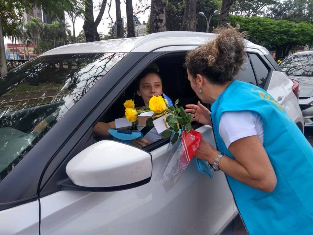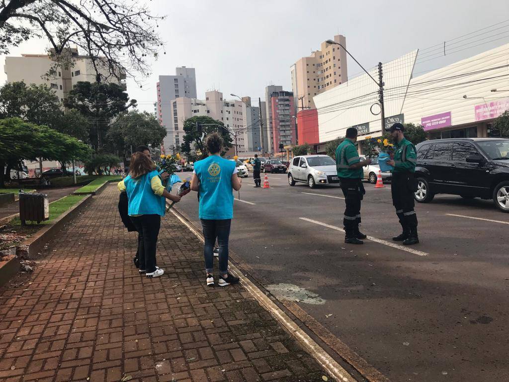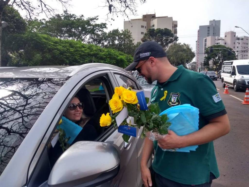 O Rotary Club de Cascavel - Leste em ação ao movimento distribuiu rosas amarelas para as mães em homenagem ao Dia das Mães e pediu para que sejam um exemplo para seus filhos no transito. O Movimento Maio Amarelo é reflexão sobre uma nova forma de encarar a mobilidade. Trata-se de um estímulo a todos os condutores, seja de caminhões, ônibus, vans, automóveis, motocicletas ou bicicletas, e aos pedestres e passageiros, a optarem por um trânsito mais seguro.