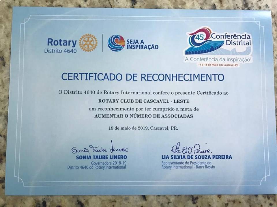 O Rotary Club de Cascavel - Leste parabeniza a Governadora Sonia Taube Linero por nos proporcionar uma Conferência Distrital eficiente repleta de harmonia entre os Rotarianos, Kidianos, Interactianos, Rotaractianos, Intercambiarios e ASR do Distrito 4640. Nosso muito obrigado.