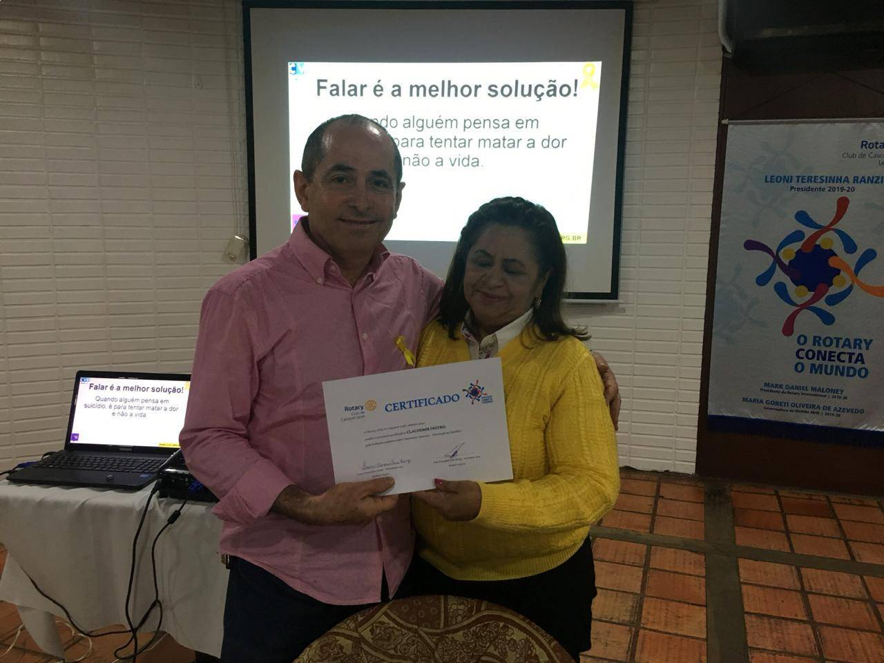 Na reunião desta quarta-feira (05) os companheiros do Rotary Club de Cascavel Leste participaram de uma palestra sobre prevenção ao suicídio. O palestrante, psicólogo Claudemir Desto é presidente do Navivel (Núcleo de Apoio à Vida de Cascavel), mantenedora do Centro de Valorização à Vida (CVV). "Falar sobre esse assunto pode salvar vidas! O suicida dá sinais, então precisamos estar atentos a esses sinais e oferecer um ombro amigo, sem julgamentos".
